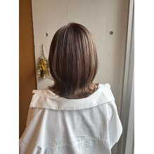 室内の光でも外の自然光でも柔らかなピンクカラーがポイントのカラーリングです(^-^)